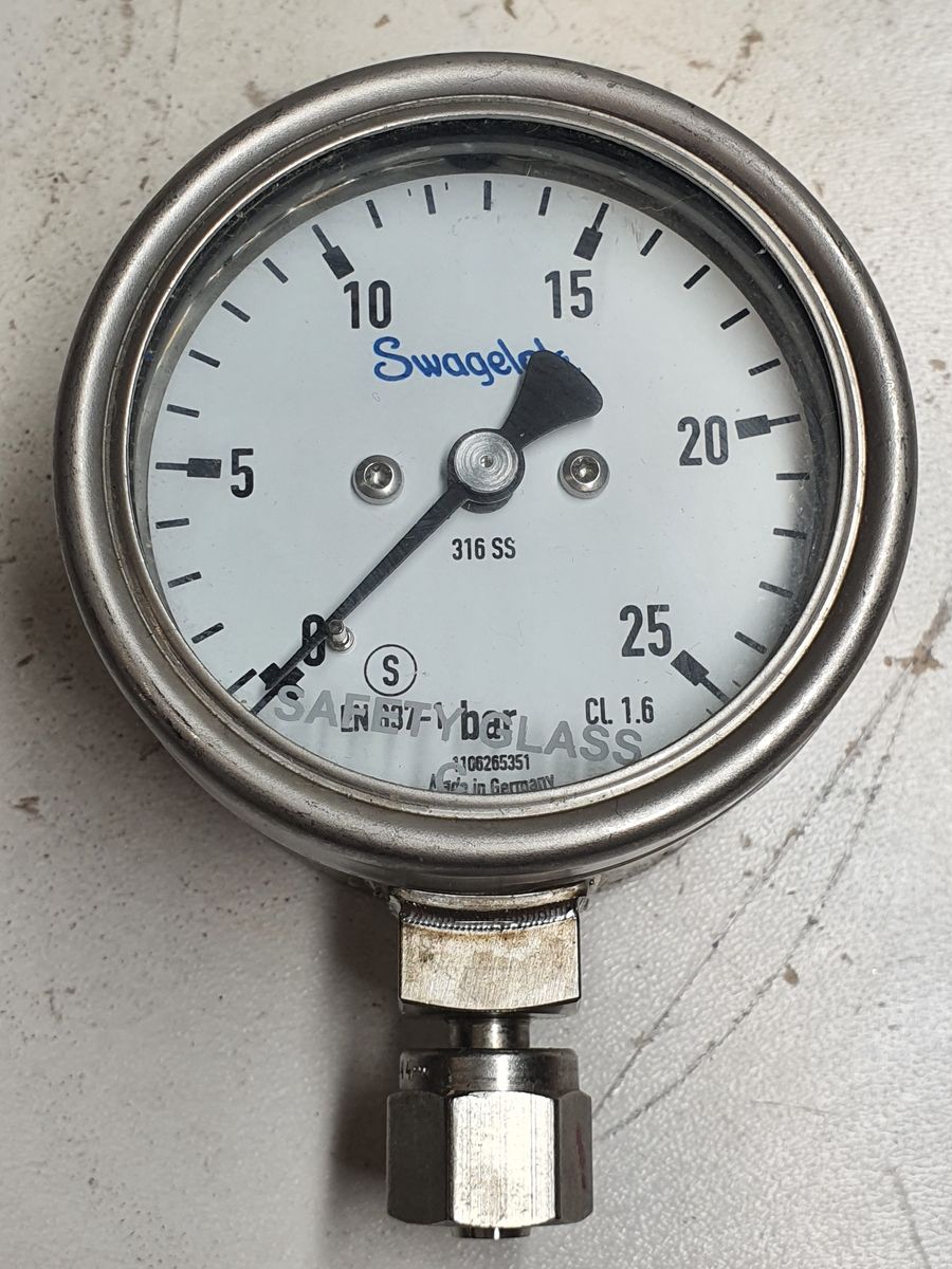 Swagelok PGI Pressure Gauge 0-25 bar 1/4 Tube Fitting Female 63mm