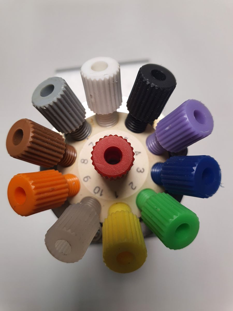 - Meerpoorts keuzeklep (bijv. 10-standen), waarmee vloeistof-/gasstromen tussen de inlaat en meerdere uitlaten of doodlopende posities kunnen worden geleid.