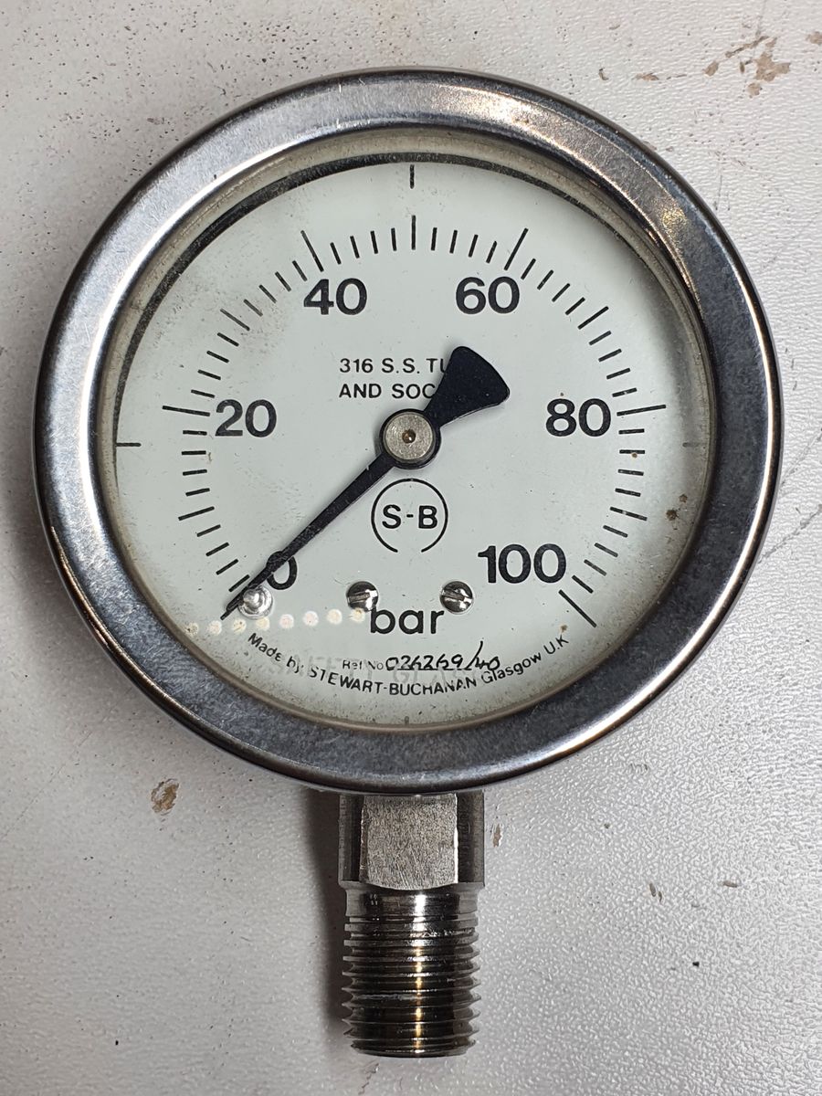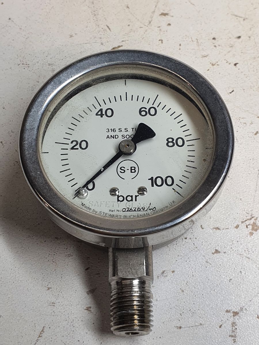 Stewart Buchanan Pressure Gauge 0-100 bar 1/4 NPT Male 67mm